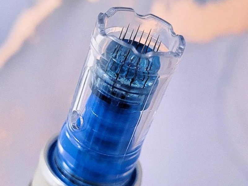 Tijdens de microneedling behandeling maken we gebruik van de Dermapen 4. Deze geavanceerde pen bevat 14 minuscule, vibrerende naaldjes die microscopische kanaaltjes in de huid creëren. Hierdoor worden groeifactoren gestimuleerd die de aanmaak van collageen en elastine bevorderen. Dit zorgt voor een stevigere, gladdere en egalere huidstructuur.